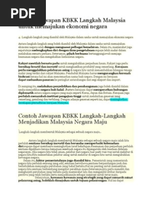 Contoh Jawapan Kbkk Langkah Malaysia Untuk Memajukan Ekonomi Negara Pdf